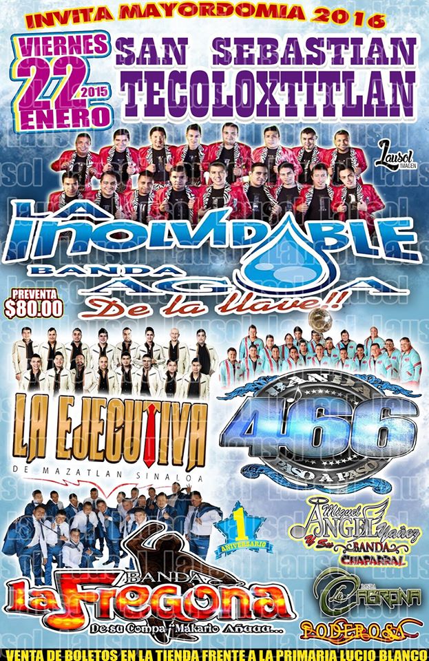 No te pierdas los mejores bailes de música de banda con las mejores bandas del momento tales como La Banda MS, La Arrolladora, REcoditos, Cañaveral, Trakaloza, La Inolvidable, Gerardo Ortiz, El Komander, Duelo, Cuisillos y muchas, muchas más.